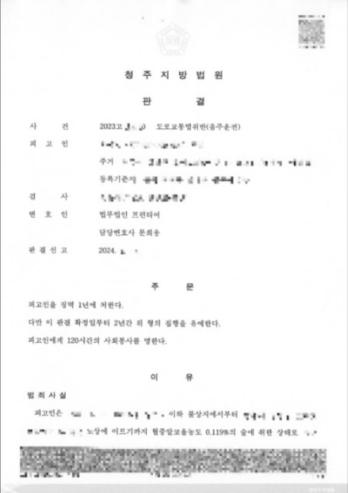 두 번째 적발 당시 혈중알코올농도는 0.114%로 측정되었으며, 이는 단순한 실수로 보기 어려운 수준이었고 실형 선고 가능성이 매우 높은 상태였습니다.