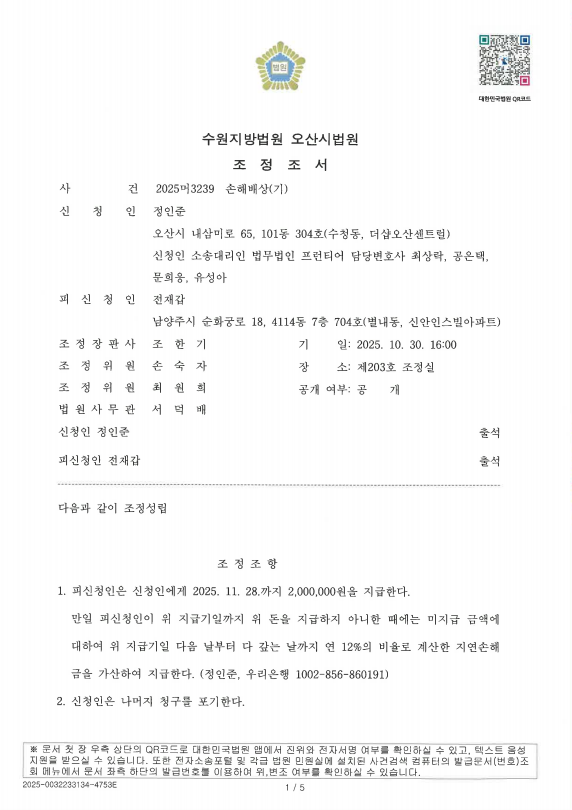 비록 처음부터 주장한 내용이 전부 그대로 인정되는 방식은 아니었더라도, 법원 조정이라는 절차 안에서 상대방의 지급 의무를 명확히 하고 사건을 종결했다는 점에서 실질적인 성과가 있는 사례라고 볼 수 있습니다.