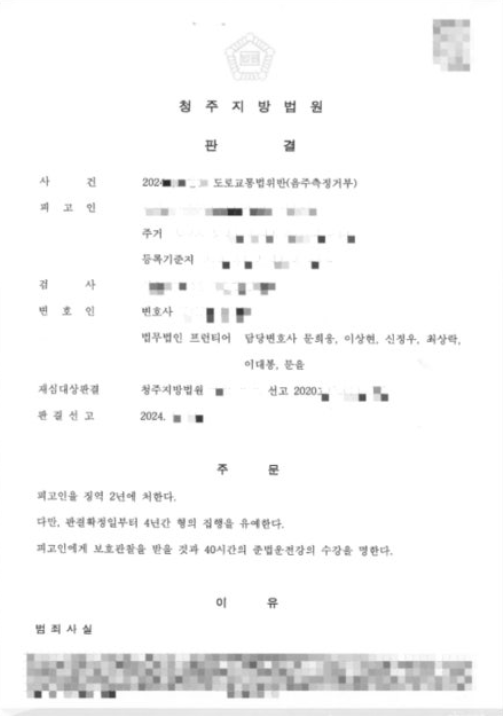 또한 의뢰인은 음주 습관 개선을 위해 상담·치료 프로그램에 참여하고, 운전면허를 자발적으로 반납하는 등 재발 방지를 위한 구체적인 실천 계획을 제시했습니다.