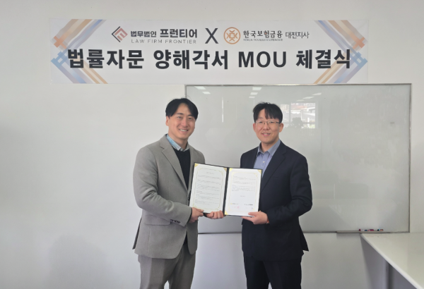 법무법인 프런티어는 2026년 2월, 한국보험금융 대전지사와 상호 협력 체계 구축을 위한 법률자문 업무협약(MOU)을 체결하였습니다.